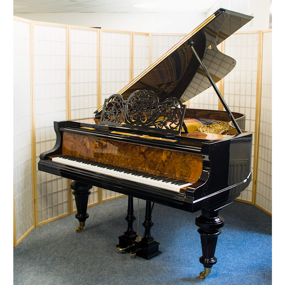 Blüthner Flügel mit Jubiläums-Gussplatte, gebraucht, 190 cm, schwarz Hochglanz