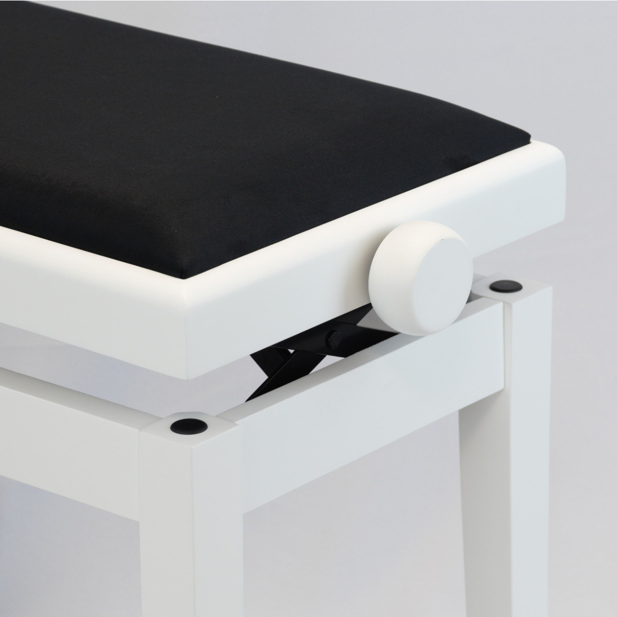 Klavierbank weiß matt mit schwarzem Polster